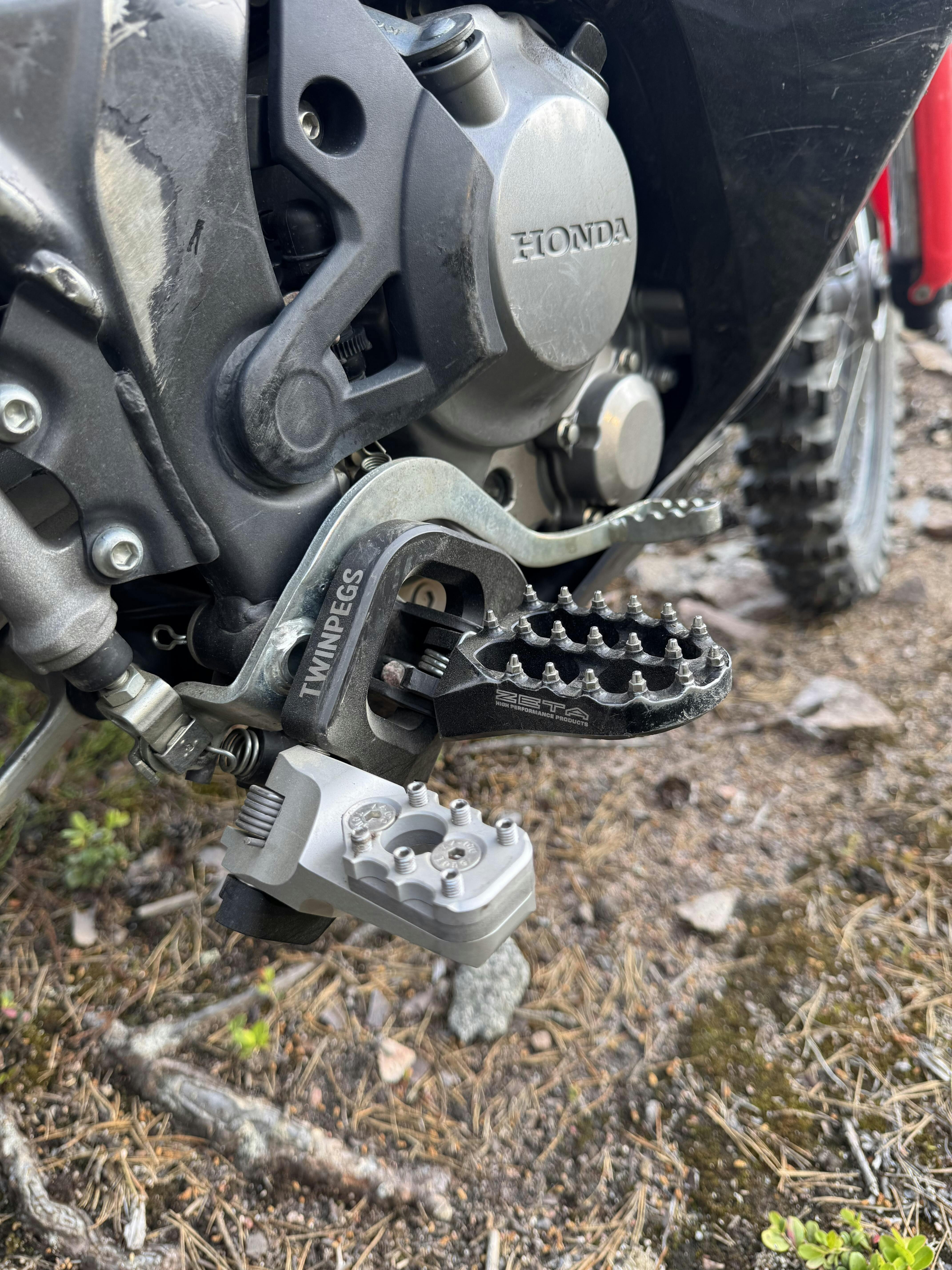 I recently installed the Twinpeg and already after one day of offroad riding, I noticed the difference. My whole boot rests on the pegs and what a difference does that make!